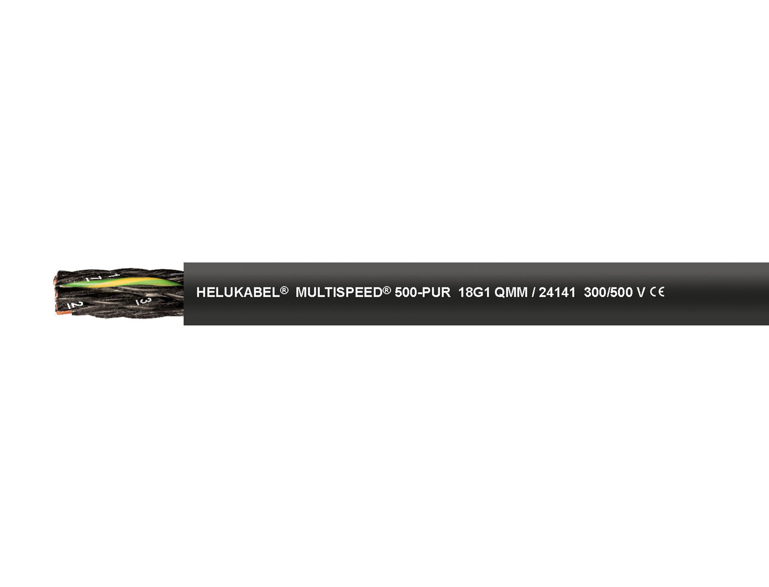 - Außenmantel: Spezial-Vollpolyurethan nach DIN VDE 0207-363-10-2 / DIN EN 50363-10-2 (Mischungstyp TMPU), zwickelfüllend extrudiert